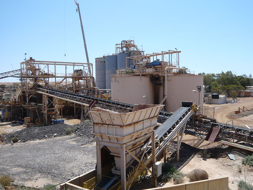 The plant receives ore delivered to the ROM pad from various open pit ore sources. Processing includes primary crushing, conveying, coarse ore storage, primary and secondary milling, gravity gold circuit consisting of a gravity concentrator and an intensive cyanidation circuit. The balance of gold recovery is obtained from a seven tank CIL circuit, four tonne pressure Zadra elution circuit and electrowinning systems.